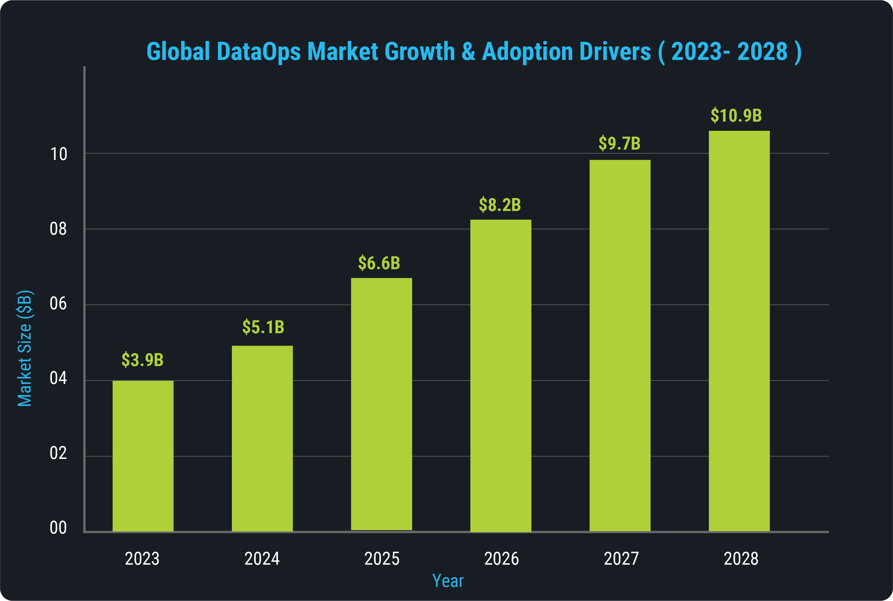 “ “The global DataOps platform market is expected to grow from USD 3.9 billion in 2023 to USD 10.9 billion by 2028, at a CAGR of over 23%.” ”